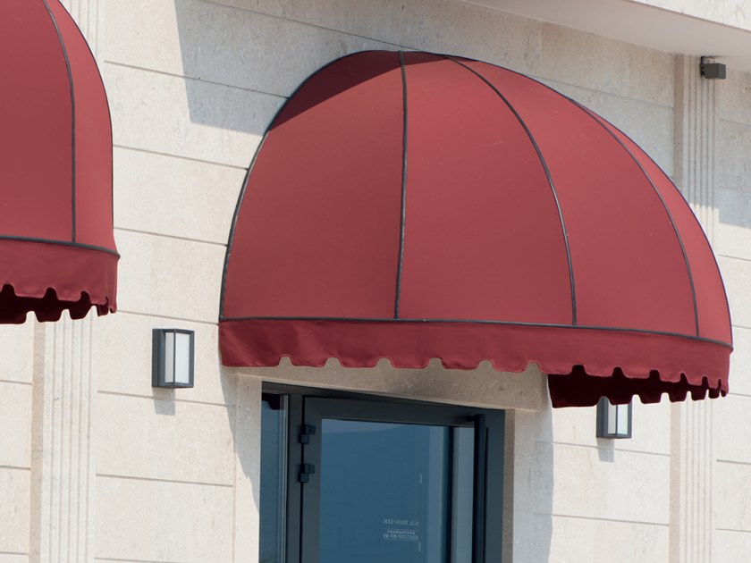Questa tenda da sole viene utilizzata anche in questo caso per i balconi, oppure per coprire finestre o vetrate. Presenta una forma bombata e il telo è cucito sopra un telaio curvato ad arco. Offre protezione superiore e frontale in modo parziale. Ha una struttura a ventaglio che raccoglie il telo in alto con apertura manuale.