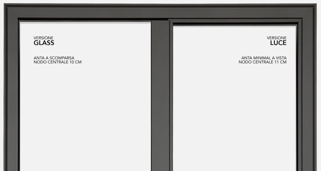 Spessore del nodo centrale solo 10 cm. Invisibile installato a scomparsa il serramento lascia spazio solo alla luce.