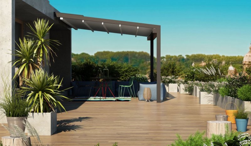 Lo spazio esterno della propria casa può essere sfruttato predisponendo schermature solari o coperture, come le Pergotende, che permettono di vivere l’outdoor in qualsiasi momento della giornata e con qualsiasi condizione climatica, avendo la possibilità di far entrare maggior luce o avere più ombra.